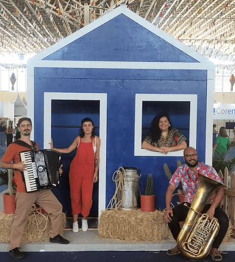 Integrantes: Cássia Guimarães (Zabumba e Voz), Dani Baldissera (Triângulo e Voz), Mattews Sol Sol (Tuba), Zé Gabriel (Sanfona e backing Vocal)